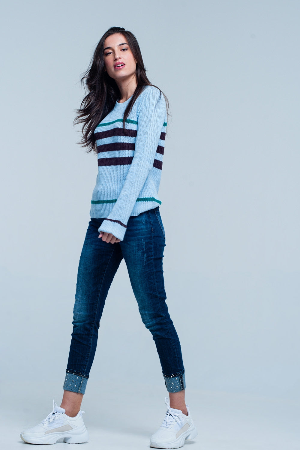 Subcategoria: Jerséis. Cuello: Cuello redondo. Manga: Manga Larga. Estampado: Estampado a rayas. Corte: Diseño amplio. Estilo: Comfortable. Tejido: Tejido de punto de ochos. runs true to size. S.