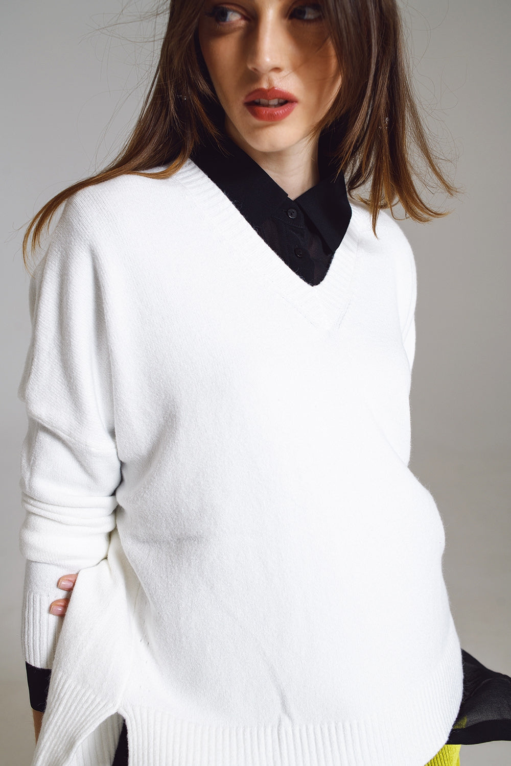 Subcategoria: Jerséis. Cuello: Cuello en V ancho. Manga: Manga Larga. Corte: Diseño amplio. Estilo: Comfortable. Tejido: Punto suave. runs true to size. U.