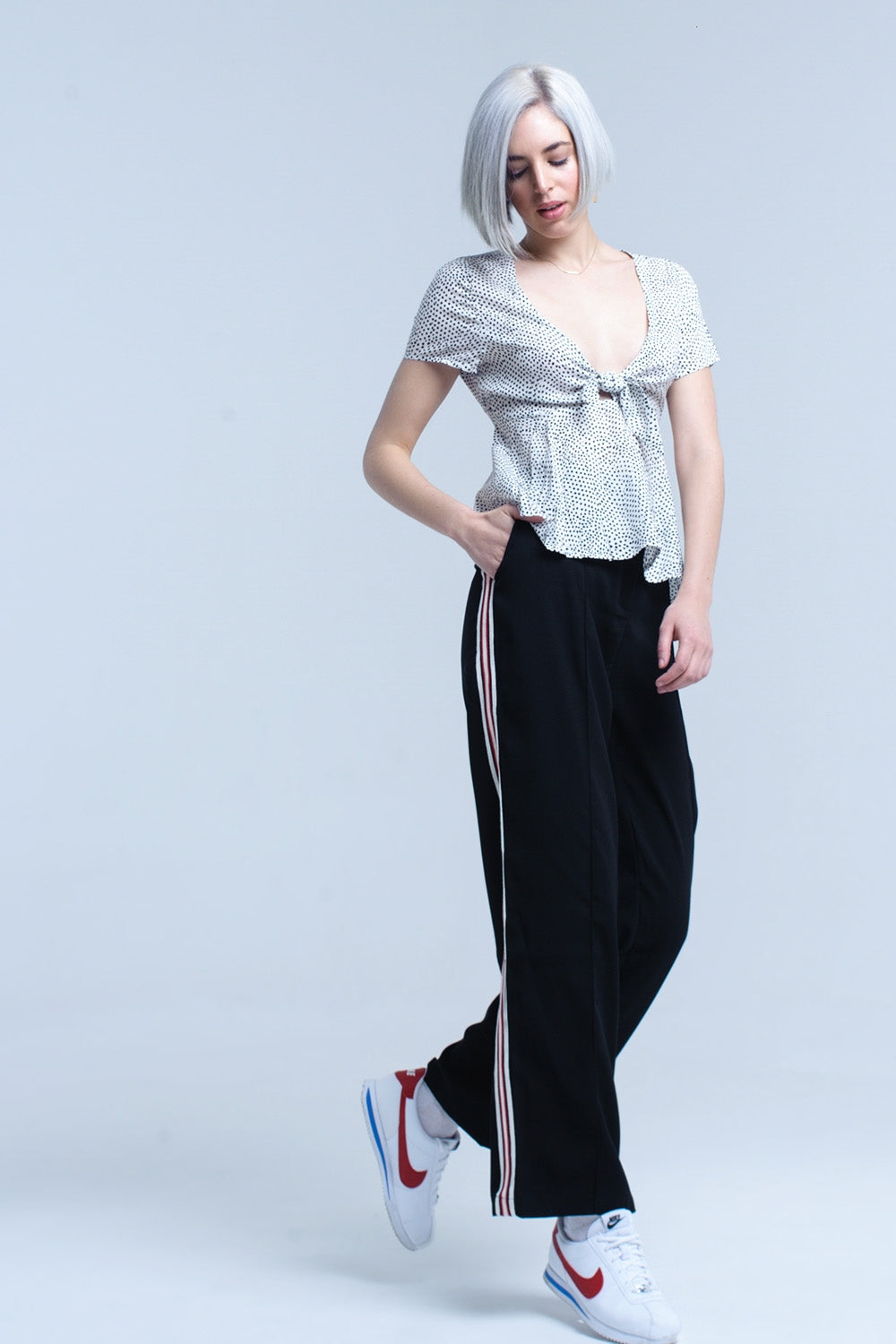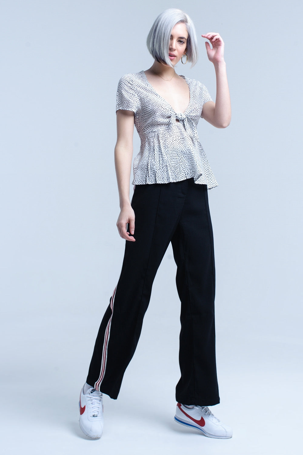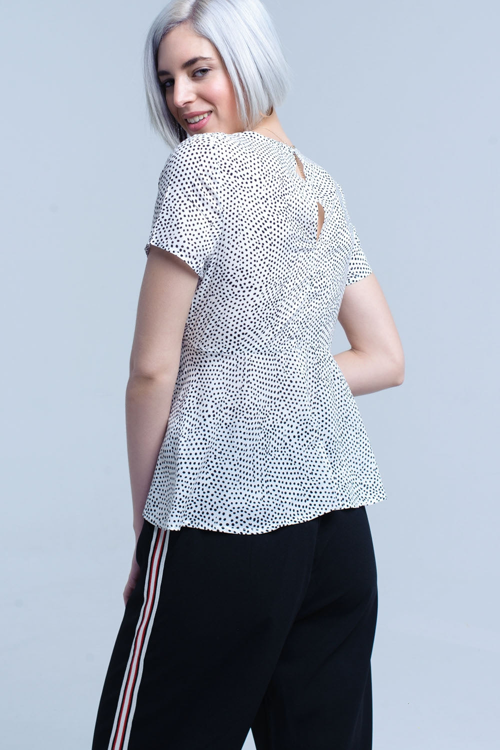 Subcategoria: Top. Cuello: Cuello en V. Manga: Manga Corta. Estampado: Estampado de lunares. Estilo: Fiesta. runs big. S.