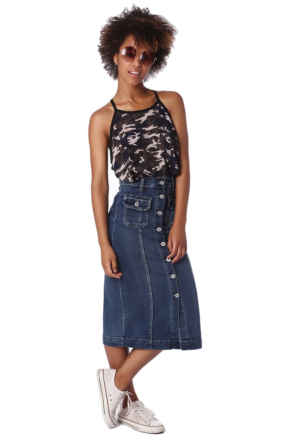 Top con bajo asimétrico y estampado camuflaje