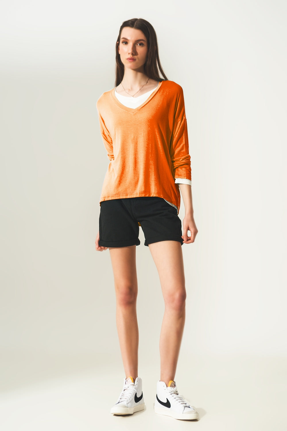 Subcategoria: Camiseta. Cuello: Cuello en V ancho. Manga: Manga Larga. Corte: Diseño amplio. Estilo: Diario. Tejido: Modal. Detalles del producto: Sisas caídas. runs true to size. S.