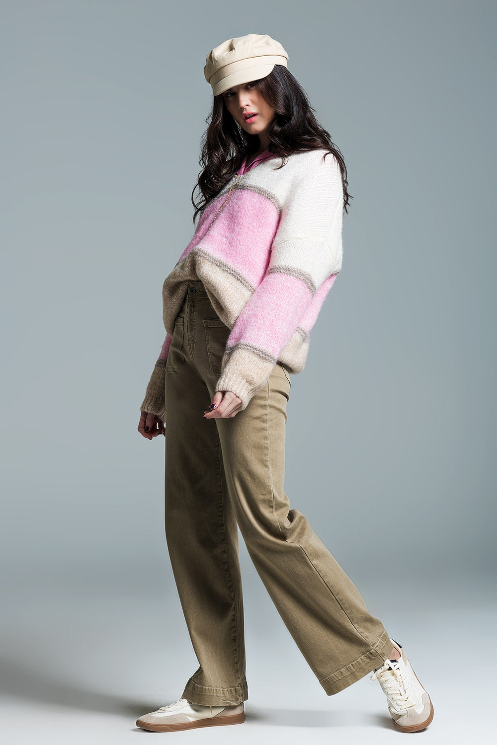 vaqueros acampanados de cintura alta con bolsillos delanteros en kakhi