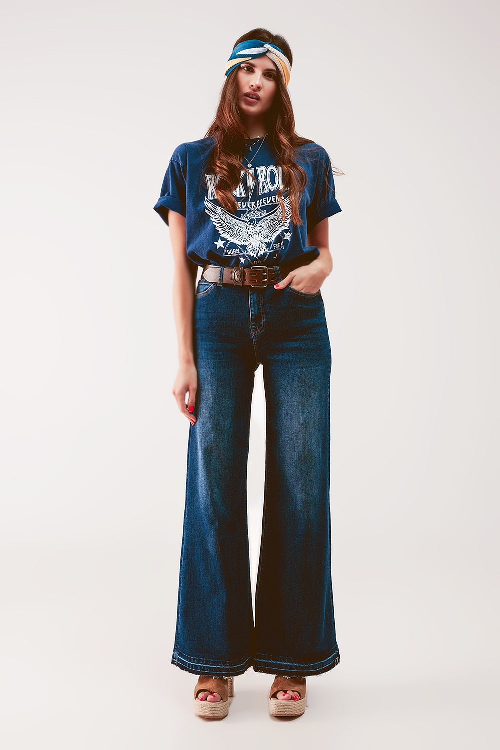 Vaqueros azul medio de corte palazzo y pernera ancha