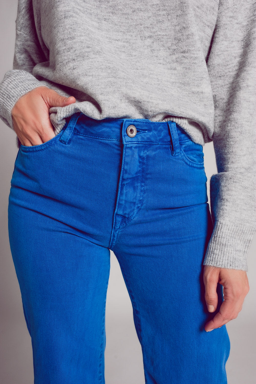 Vaqueros azules de pernera ancha de mezcla de algodón