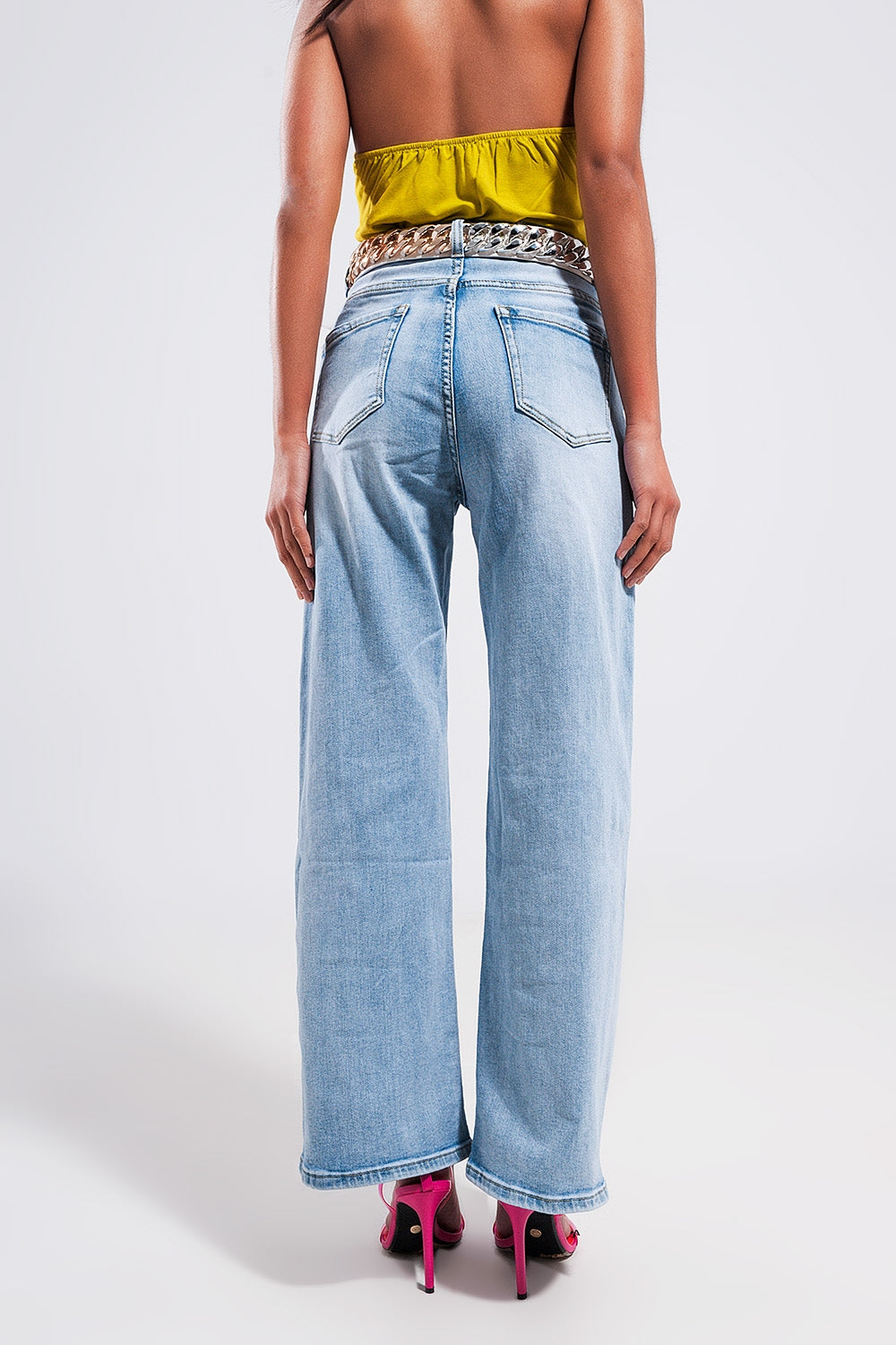 Vaqueros de talle alto y pernera ancha con lavado claro