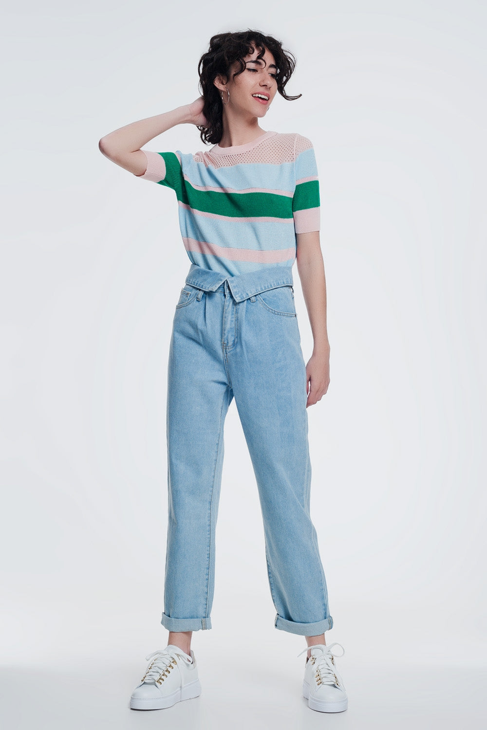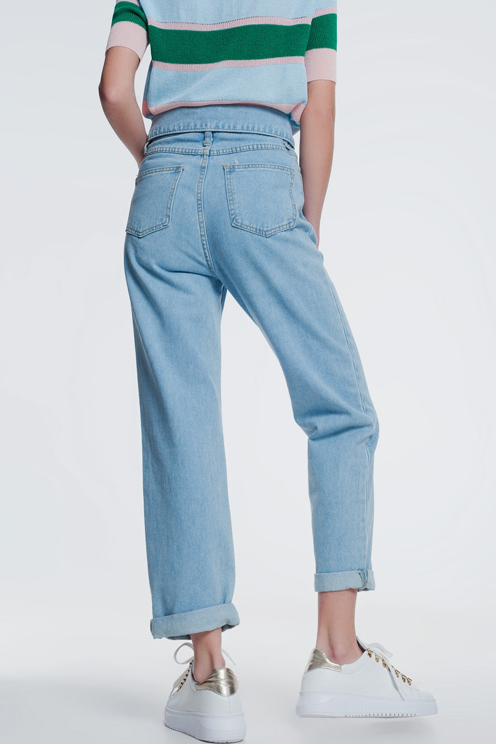Vaqueros Mom con detalle en la parte delantera plisado y cintura doblada