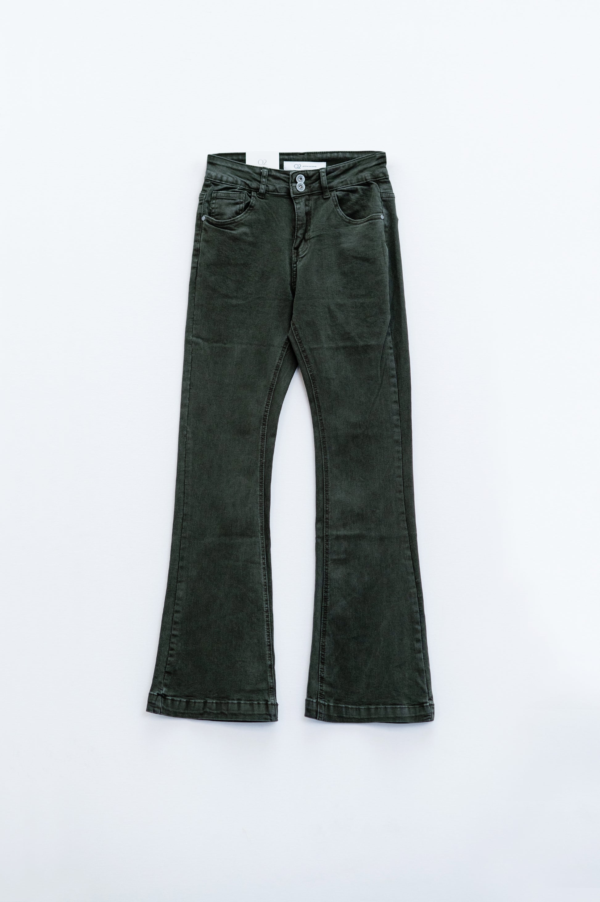 Vaqueros pitillo acampanados con detalle de doble botón en caqui
