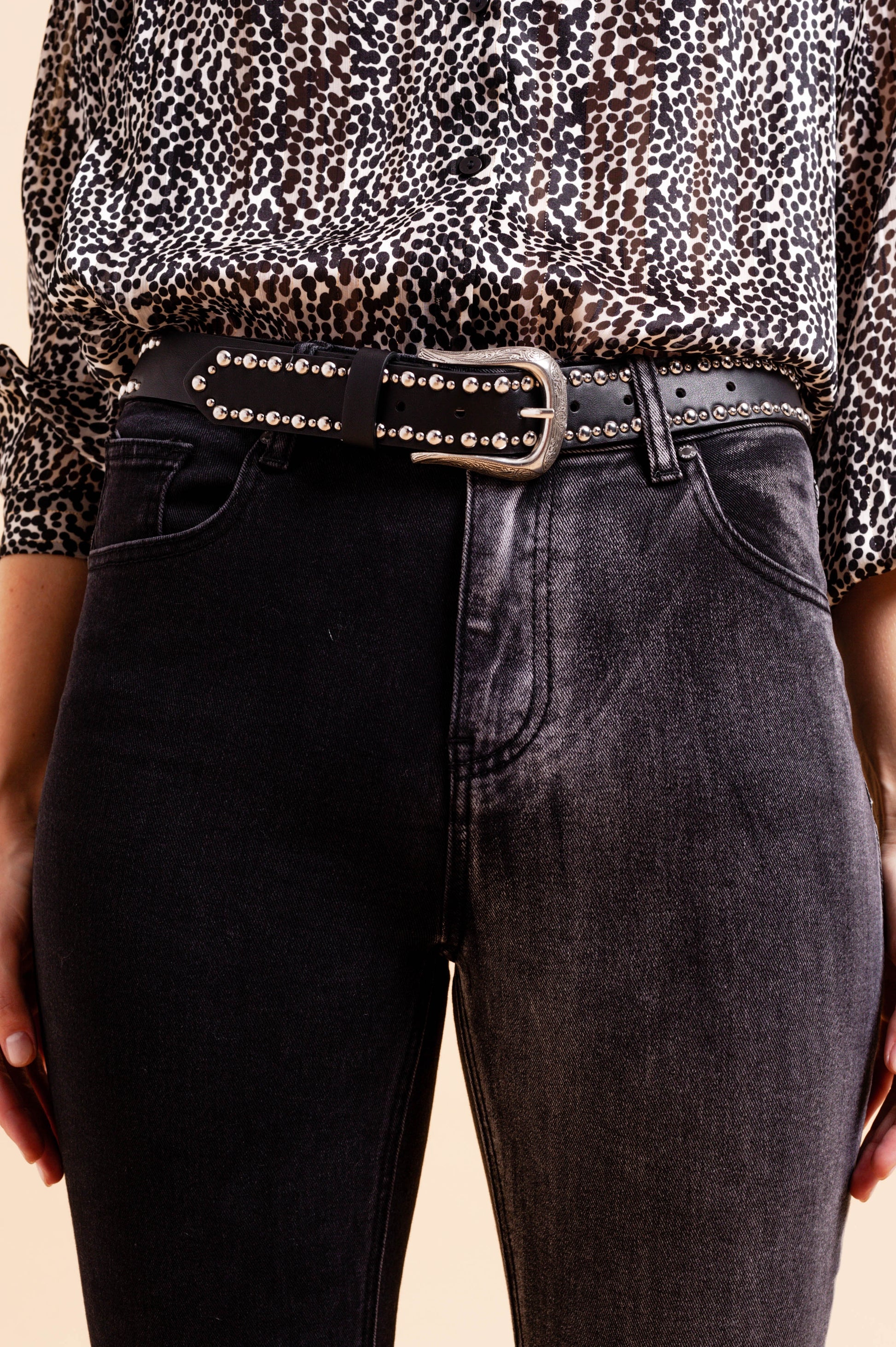 Vaqueros pitillo con diseño color block