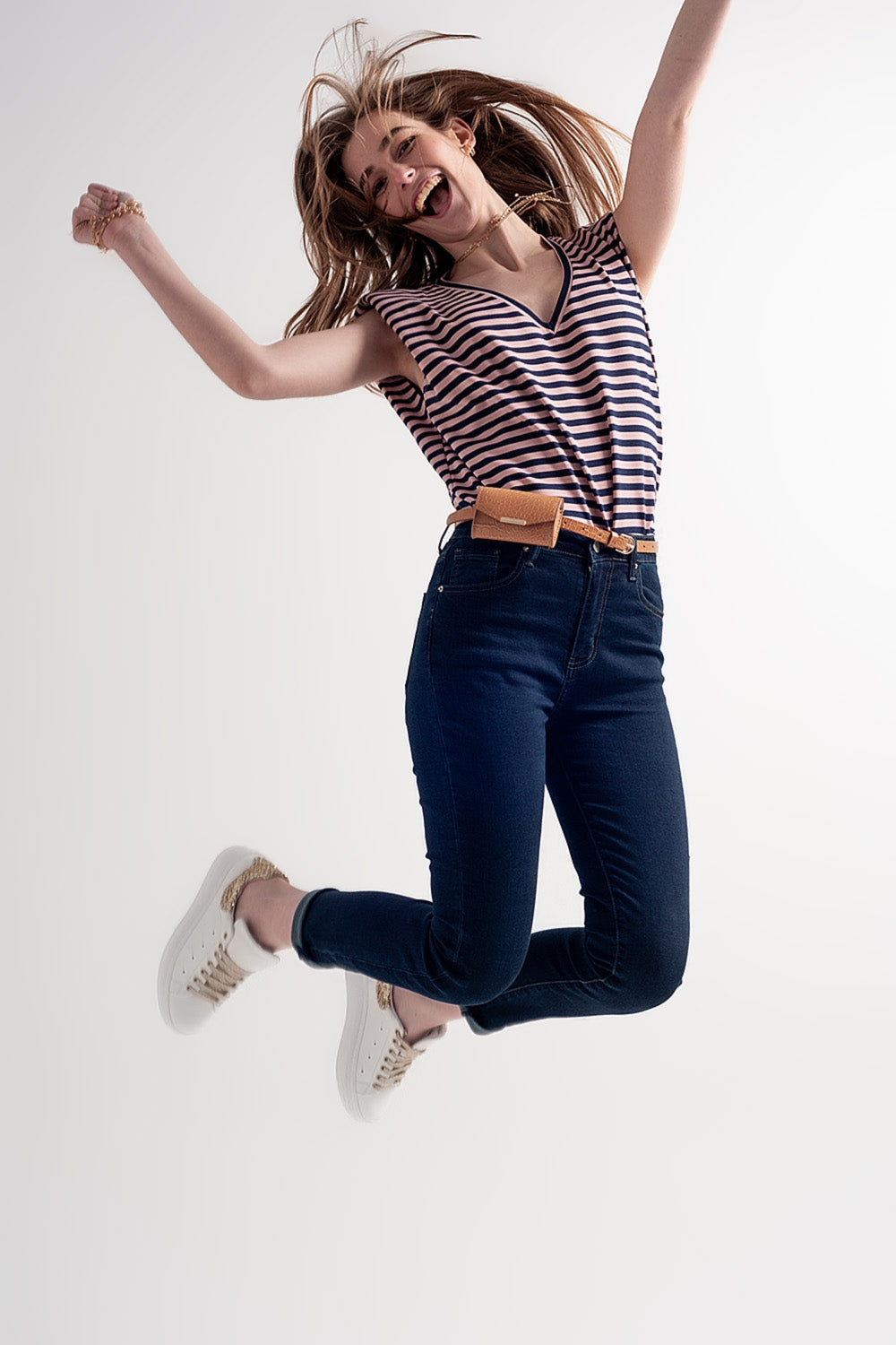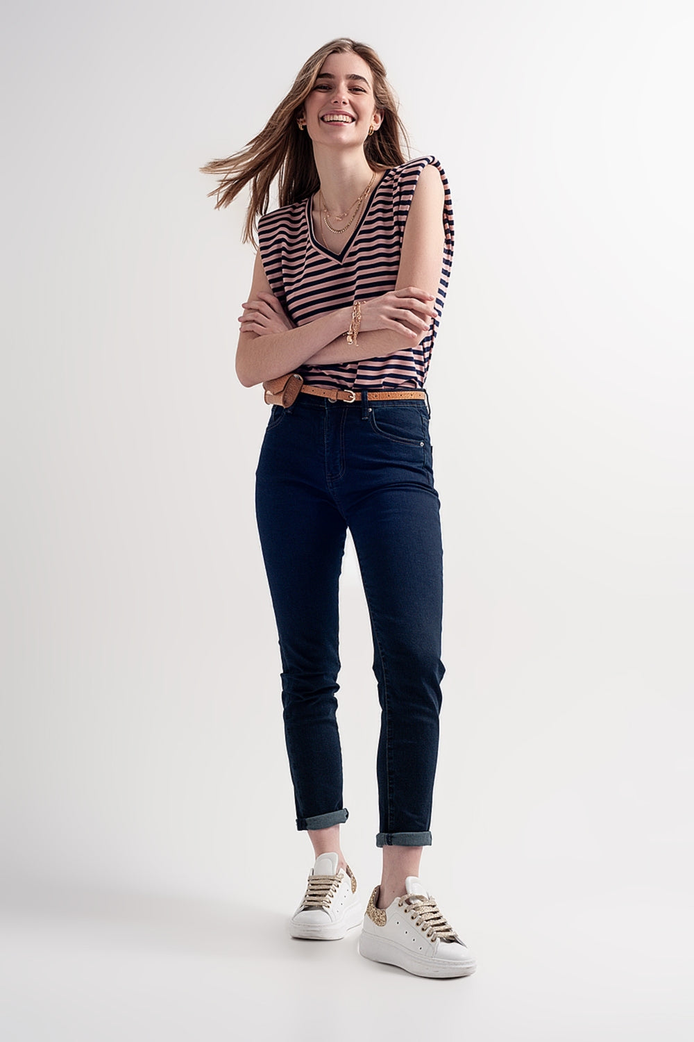 Vaqueros pitillo de talle alto en color azul oscuro