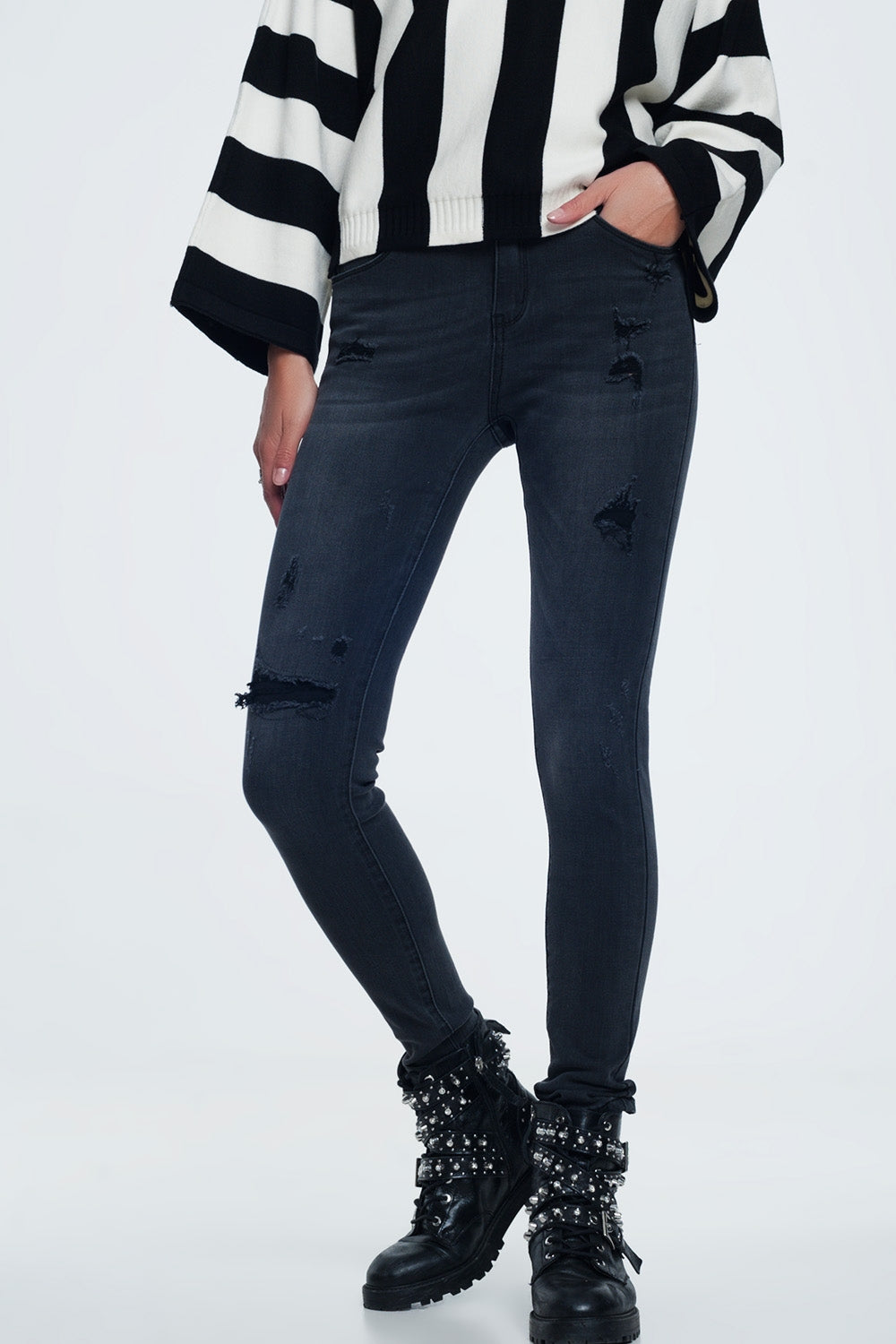 Vaqueros pitillo desgastados en negro