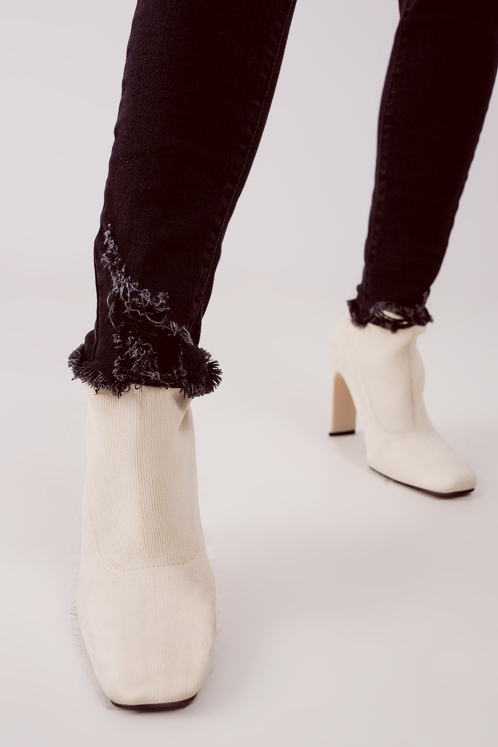 Vaqueros pitillo negros de talle alto con roturas