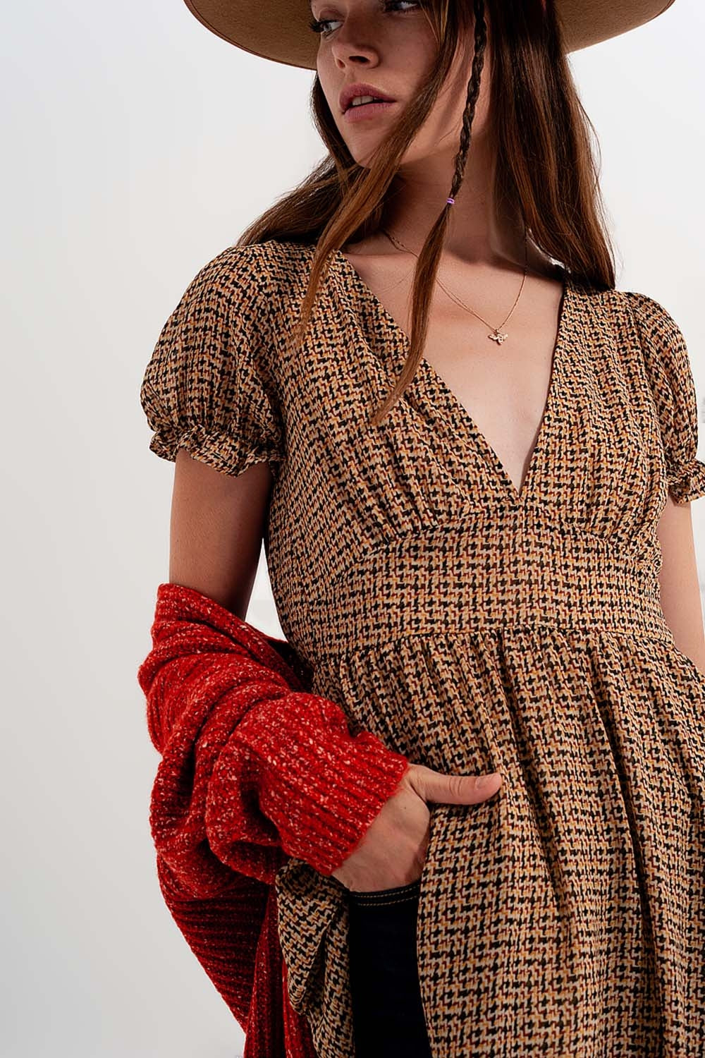 Largo: Largo mini. Subcategoria: Vestido. Cuello: Cuello en V. Manga: Manga Corta. Estampado: Estampado a cuadros. Corte: Estilo skater. Estilo: Casual. runs true to size. S.