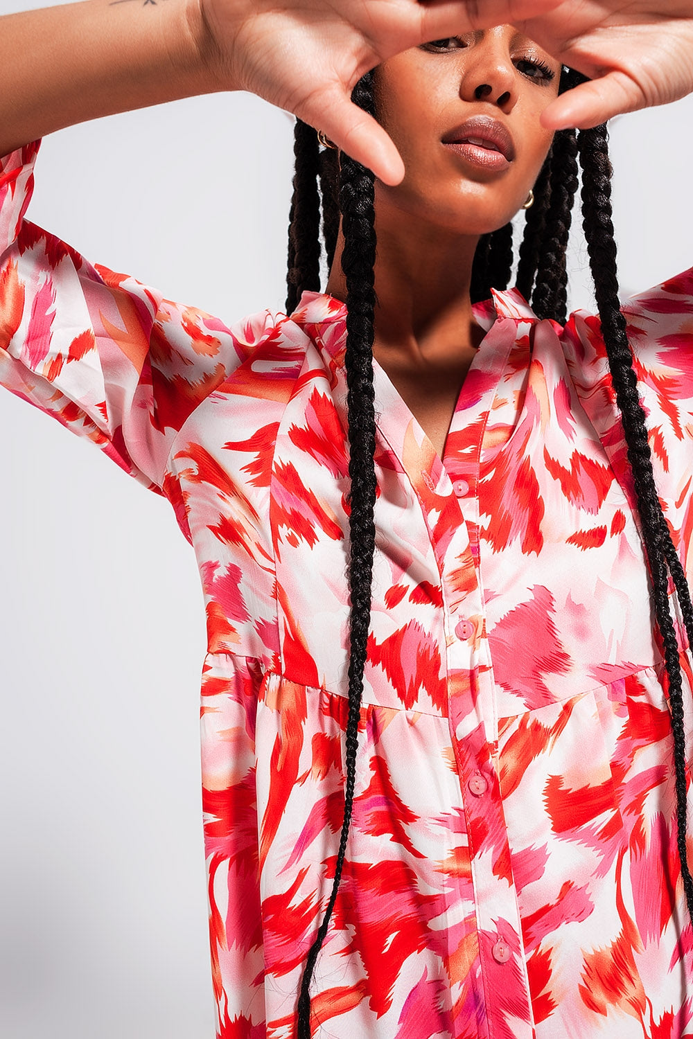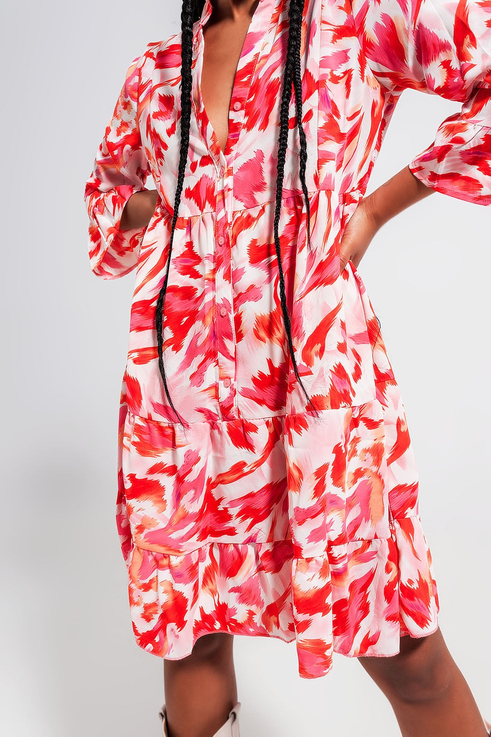 Largo: Estilo corto. Subcategoria: Vestido. Cuello: Cuello en V. Manga: Manga tres cuartos. Estampado: Estampado abstracto. Corte: Diseño amplio. Estilo: Comfortable. Tejido: Tejido ligero . Cierre: Tapeta de botones. Detalles del producto: Falda a capas. runs true to size. S.